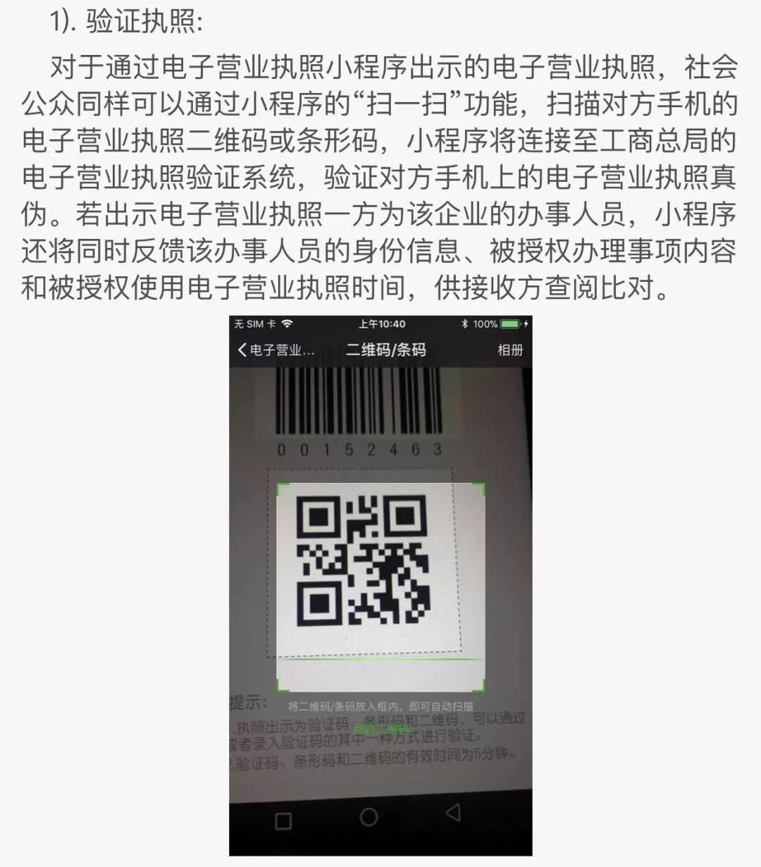 用到扫一扫功能对主要有:pc端扫码登陆,验证电子营业执照,打印电子营业执照等三个功能。
